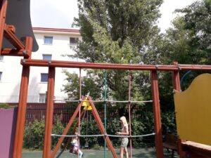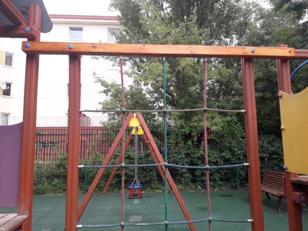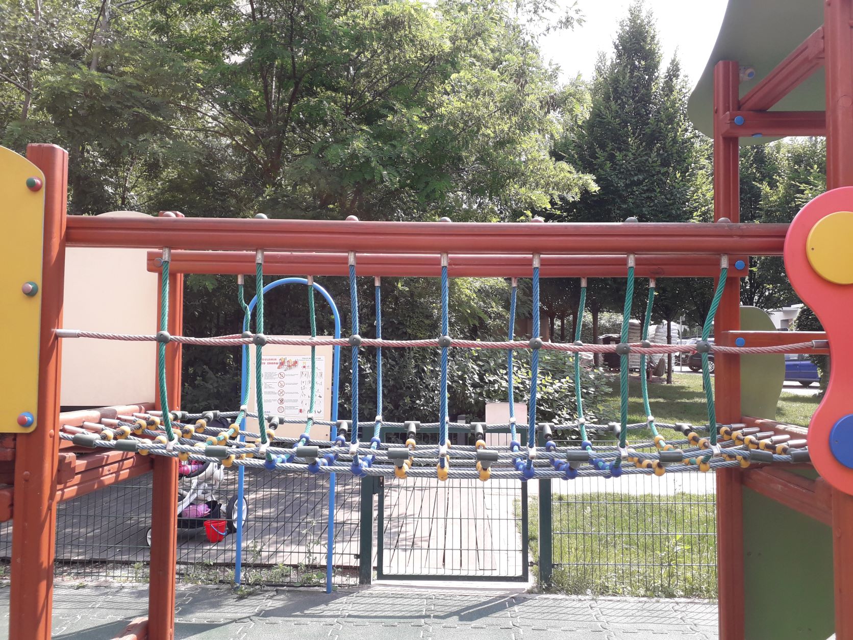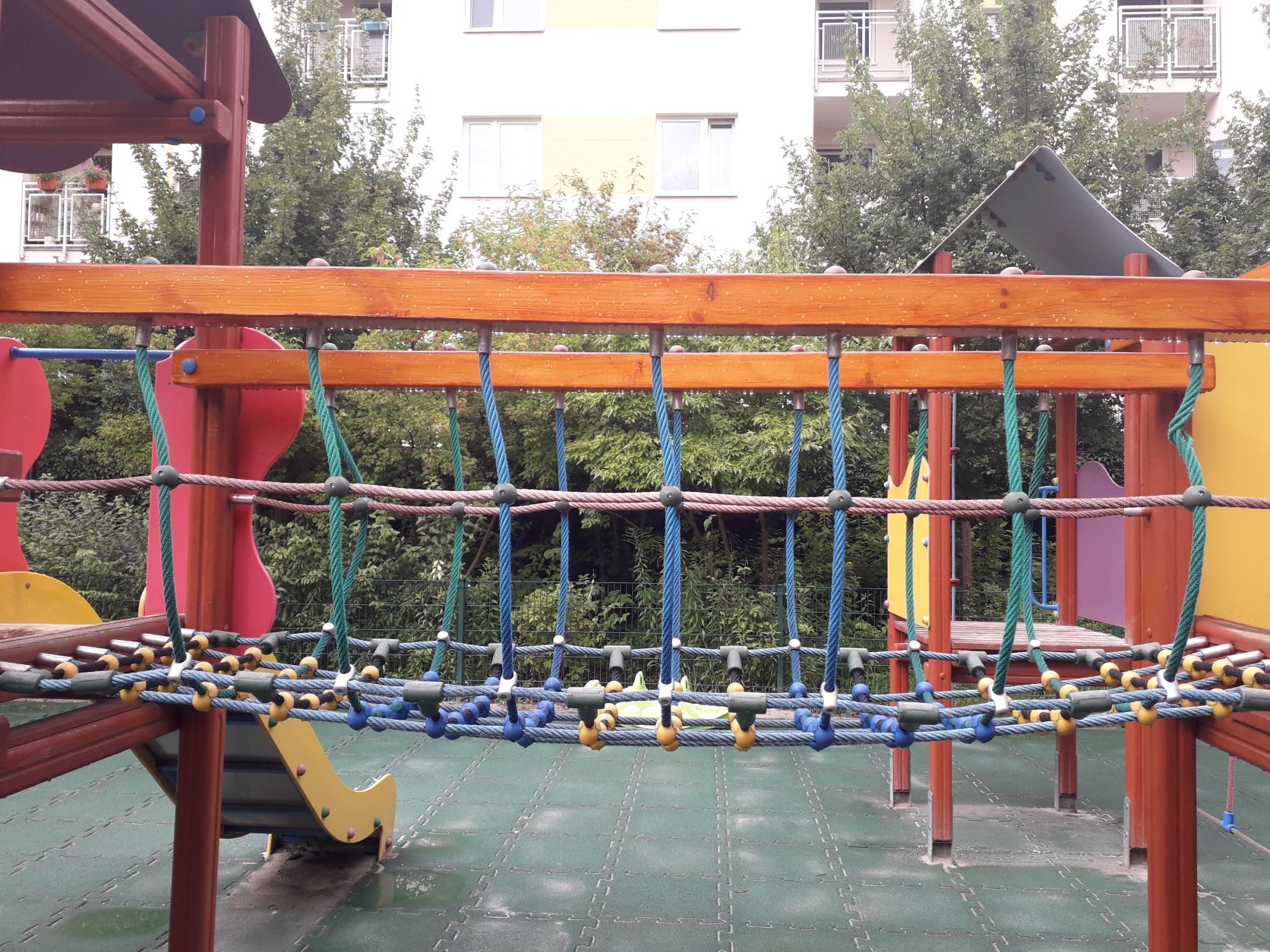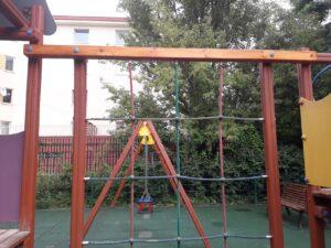 Kolejne 6 sztuk belek drewnianych zostało wymienionych w drewnianej konstrukcji na placu zabaw. Przy schodkach wejściowych 4 sztuki i przy moście linowym dwie dolne belki.