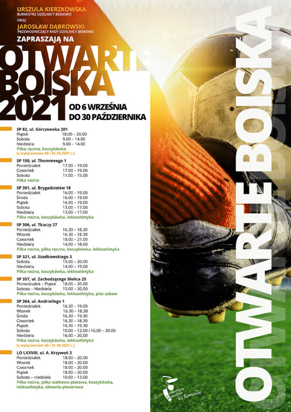 Na osiedlu mamy wielu miłośników piłki nożnej. Poniżej załączamy informację, które boiska w okolicy są otwarte. Od 12 września 2021 ruszają cykliczne zajęcia treningów piłkarskich w Szkole Podstawowej nr 363 ul. Rozłogi 10 w Warszawie (dla roczników 2012-2014). Zajęcia będą odbywały się w niedziele w godzinach 13-15. Zapraszamy do zapisów. Ilość miejsc ograniczona. Zgłoszenia tel. 515 283 801.