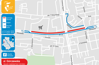 W piątkowy wieczór, wraz z północną jezdnią ul. Górczewskiej, zamknięta zostanie północna część skrzyżowania z ul. Konarskiego (od strony ul. Budy i ul. Łagowskiej). Kierowcy nie będą tu mieli możliwości dojazdu do ul. Górczewskiej. Nie będzie także możliwości przejazdu na wprost ul. Konarskiego przez ul. Górczewską. Objazd do tej części ul. Konarskiego będzie możliwy od ul. Bolkowskiej.