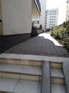 Na terenie zewnętrznym, przy przejściu za 19 klatką jeden z górnych schodków był niestabilny. Usterka została naprawiona przez konserwatora.