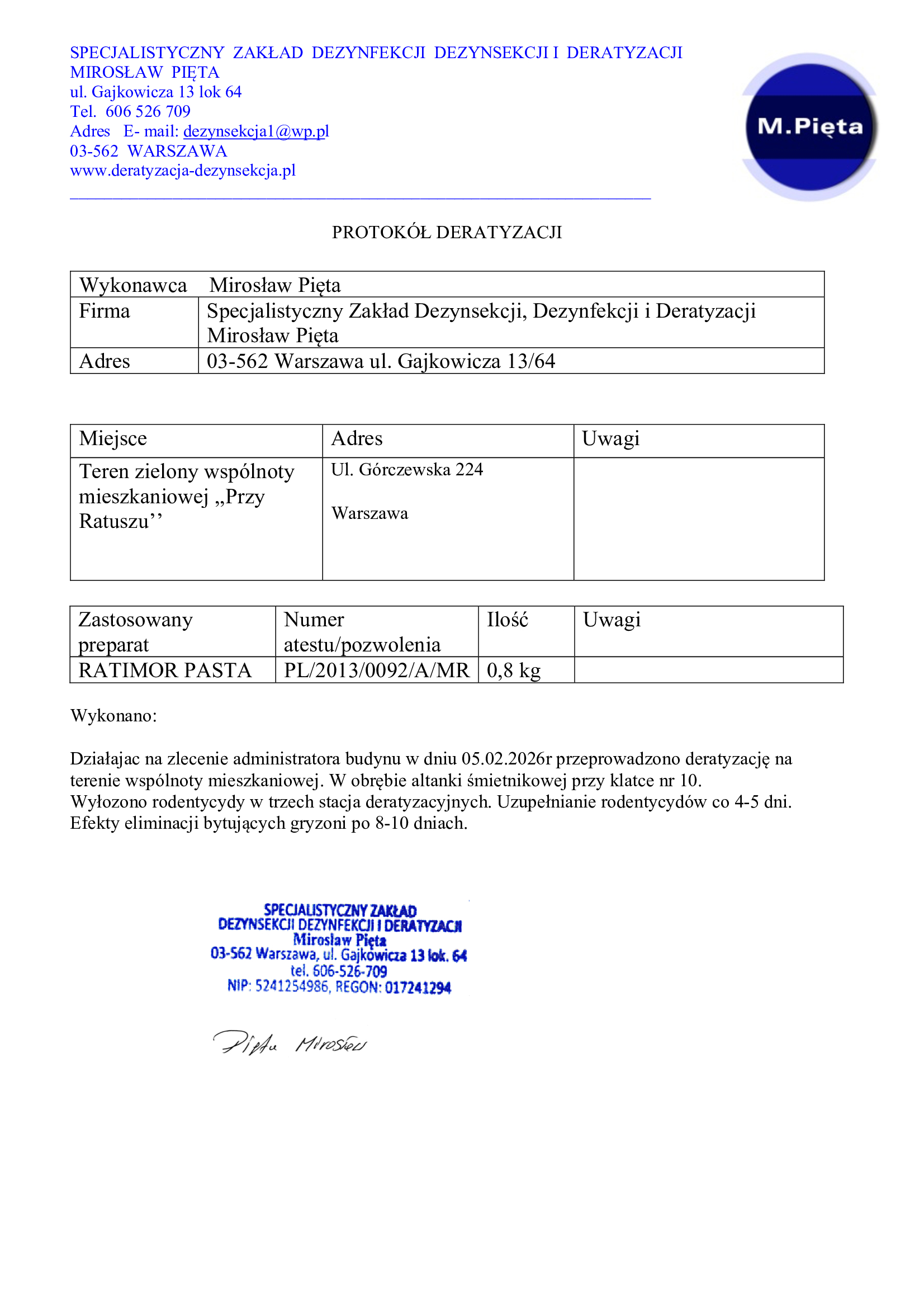 HARMONOGRAM MASZYNOWEGO MYCIA KLATEK SCHODOWYCH