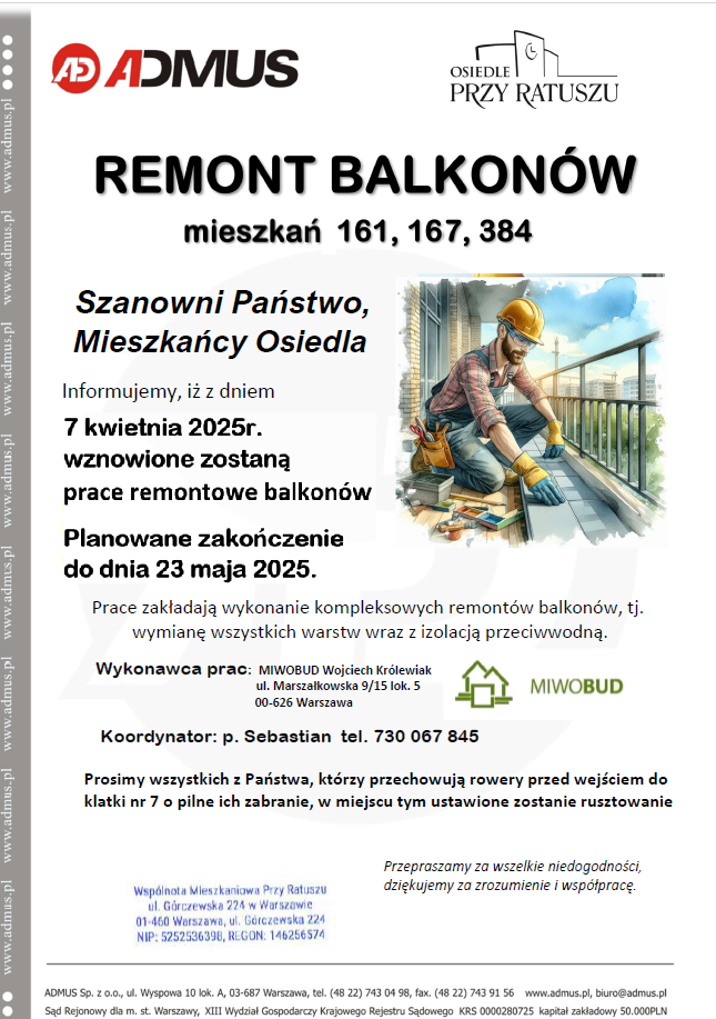 Remont balkonów : wznowienie prac