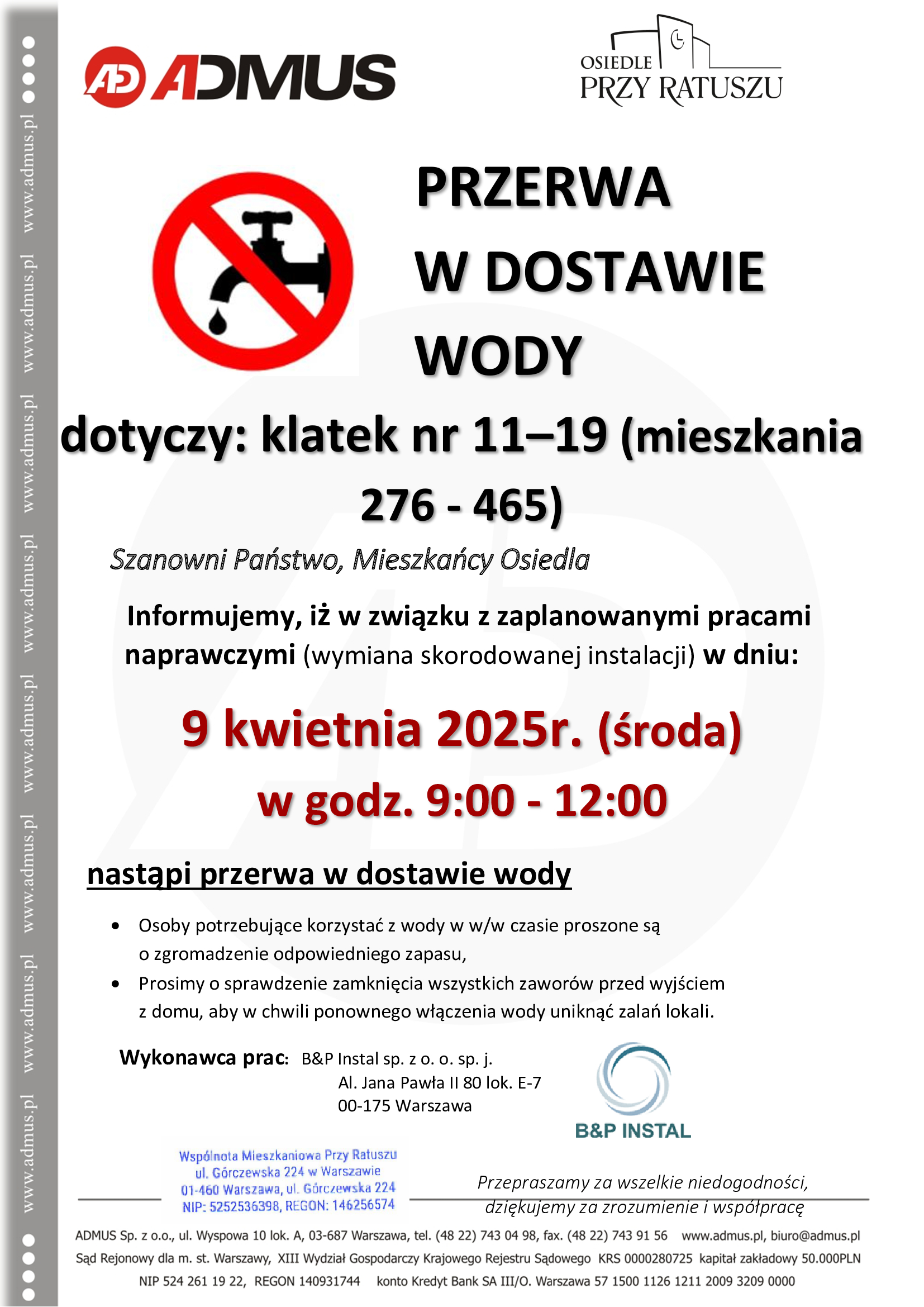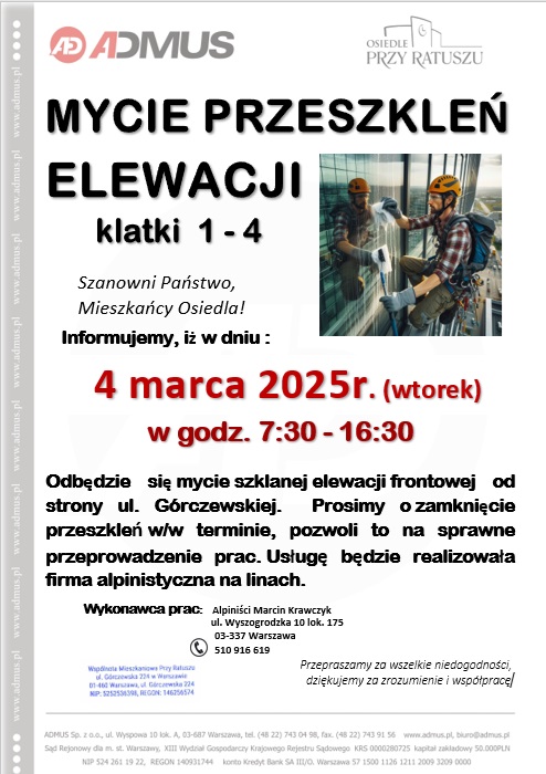 W załączeniu do niniejszej wiadomości (e-mail) przesyłamy Państwu zawiadomienie o rocznym zebraniu Wspólnoty Mieszkaniowej Przy Ratuszu przy ul. Górczewskiej 224 w Warszawie, które odbędzie się stacjonarnie w dniu: