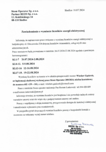 Stoen Operator Sp. z o.o. informuje o wymianie indywidulanych liczników energii elektrycznej dotyczących Państwa lokali. Poniżej oraz w załączeniu przekazujemy otrzymane Zawiadomienie wraz z harmonogramem. W przypadku ewentualnych pytań podajemy Państwu bezpośredni kontakt do Wykonawcy prac:
