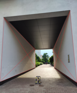 Zakres obejmuje obie ściany w przejęciu na środkowy dziedziniec (podcień) oraz ściana szczytowa przy wejściu na teren osiedle od strony apteki